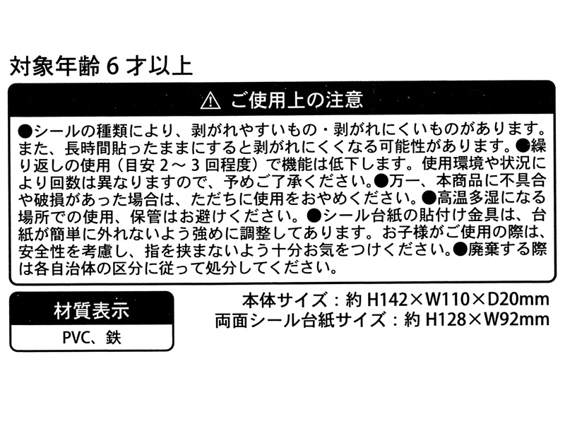 シールバインダー:約H142×W110×D20mm/シール台紙:約H128×W92mm