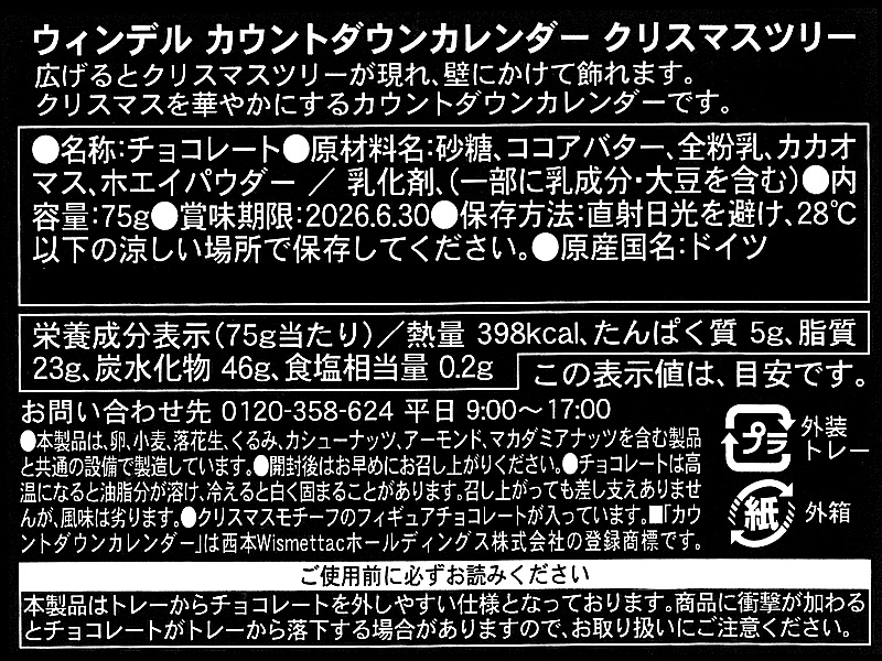 クリスマス ウィンデル カウントダウンカレンダー クリスマスツリー【軽減税率対象商品】