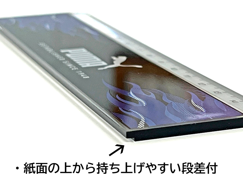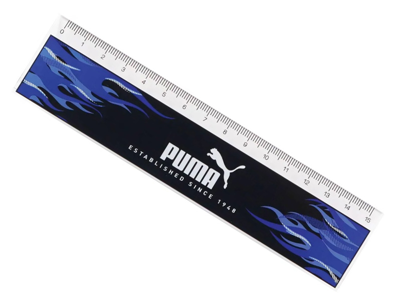 人気のスポーツブランド「PUMA」よりクールでカッコイイデザインのステーショナリーグッズが続々登場~!コチラは紙面の上からでも持ち上げやすい段差(スリット)付きの15cmプラ定規です。