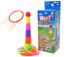 箱からタワーと台座を取り出し地面にセット(バラバラになっていても簡単に繋げられます。)あとは、輪をもってうまくタワーに入れましょう!慣れてきたら距離を離したり、自分たちなりのオリジナルルールなどを作ってゆくとさらに盛り上がりますよ。