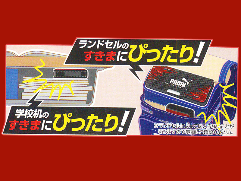 ランドセルのすき間、学校机のすき間にぴったり!コンパクトなのに大容量!「ピッタント」の筆箱にプーマ柄が仲間入り!鉛筆や消しゴムはもちろん三角定規、分度器、定規など授業に必要なものが全部入ります!お子さま進級、新入学のご準備にゼヒ!