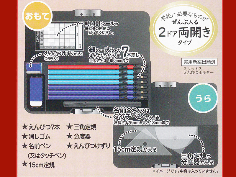 - 付属品…時間割シール、鉛筆ホルダー(7本分)、