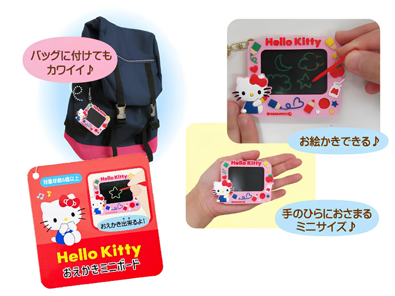 大人気サンリオグッズから可愛いnewアイテムが続々登場~♪こちらは、専用ペンで画面に絵や文字が描ける!「おえかきミニボード」※ペンは本体に差し込み収納されています♪手のひらサイズのコンパクトなミニボードキーはキーホルダー付きでバッグやリュックに付けて持ち歩いてもカワイイよ♪個人用にはモチロンのこと、可愛い見た目はプレゼントにもぴったりです!