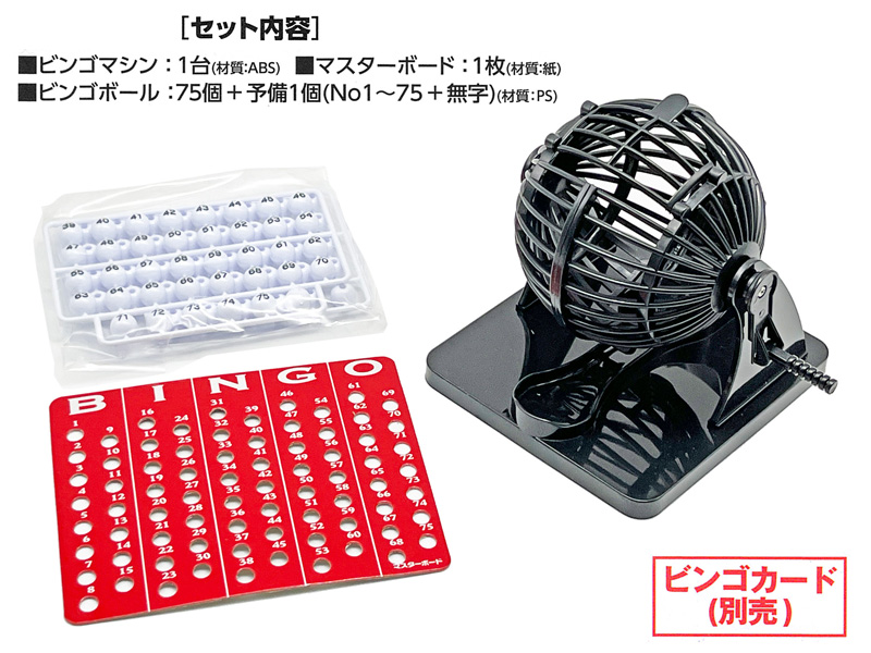 - 【セット内容】ビンゴマシン×1・マスターボード×1・ビンゴボール×75個(数字)+予備1個(無地)