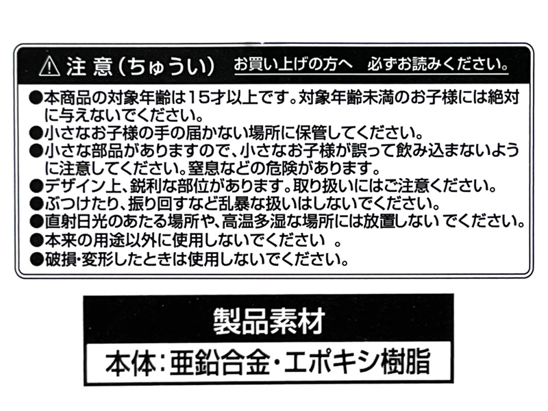 - 本体素材:亜鉛合金・エポキシ樹脂