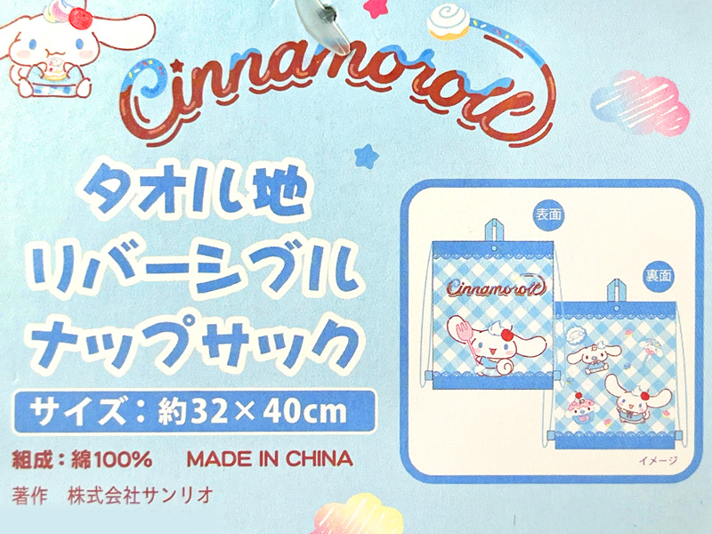 タオル地リバーシブルナップサック シナモロール