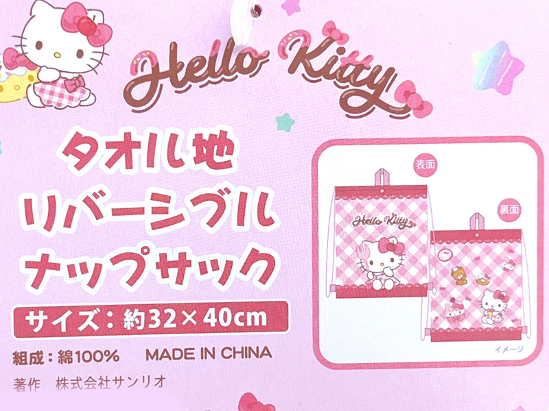 タオル地で肌触りもバツグン!サンリオキャラクター【ハローキティ】のナップサックが登場です♪
