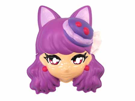 プリキュアの新シリーズ 「キラキラ☆プリキュアアラモード」のお面です。ちなみにこちらのキャラ「キュアマカロン」は美しく気高い高校2年生。上品で気まぐれなところは「ねこ」のよう。紫色のロングヘアが特徴的な少女です。