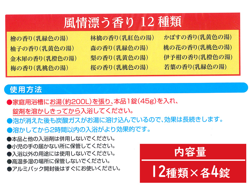 - 入浴剤:全12種類×4錠入