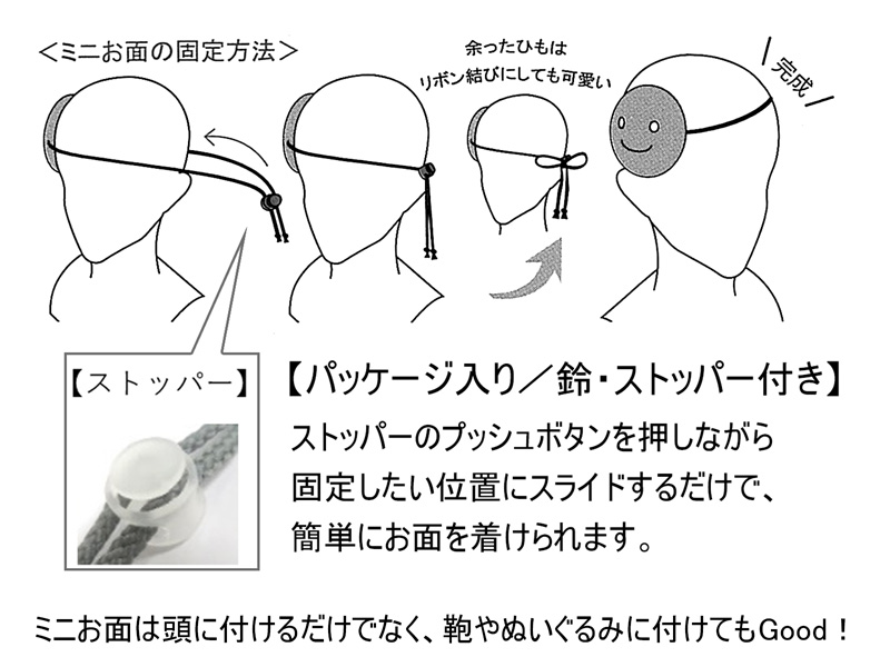 - ・ミニお面/付属品:(鈴・紐・ストッパー付き)