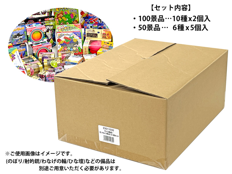 マトに最適!立っちゃう景品50個セット【100景品10種x2個、50景品6種x5個】