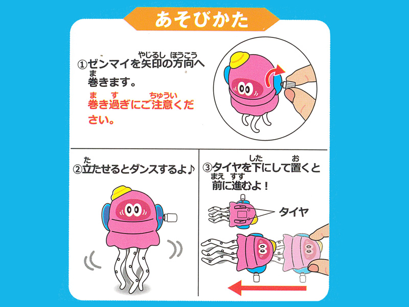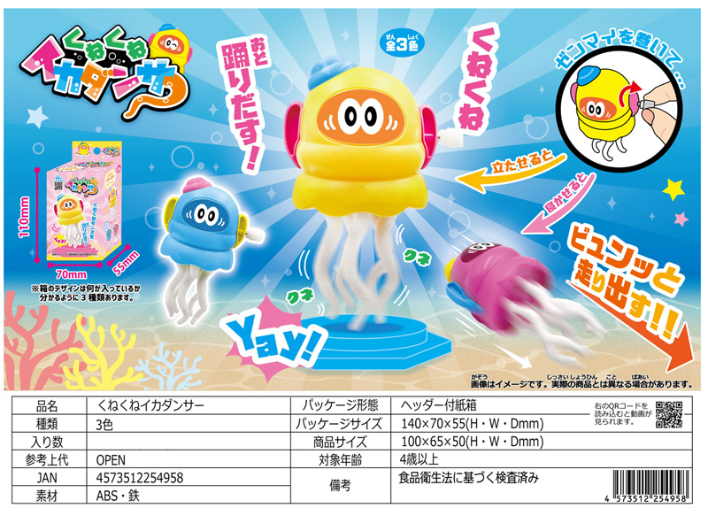 イカのダンスはすんだのかい?クセになるダンスを踊るぜんまい式おもちゃ「くねくねイカダンサー」が登場!ゼンマイを巻いた状態で立たせると足をクネクネダンスをするヨ♪タイヤを下にして置くと…ビュンっと前方に走り出します!