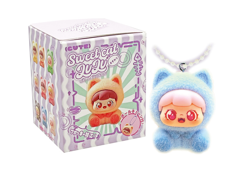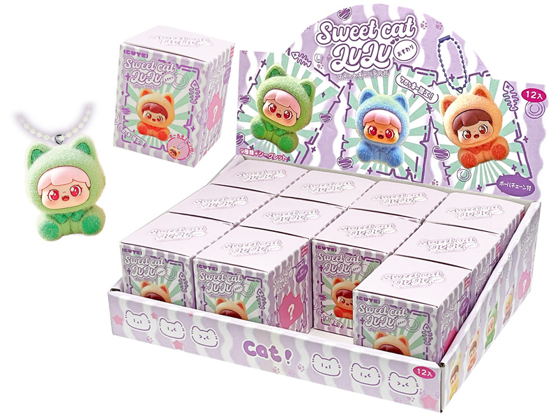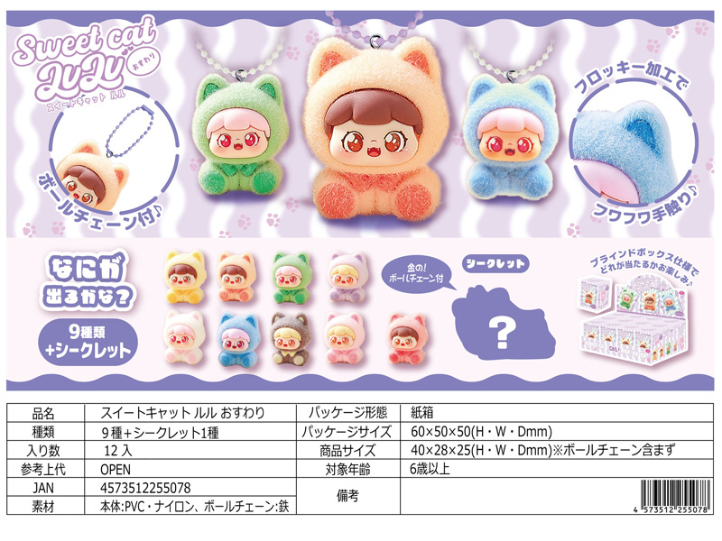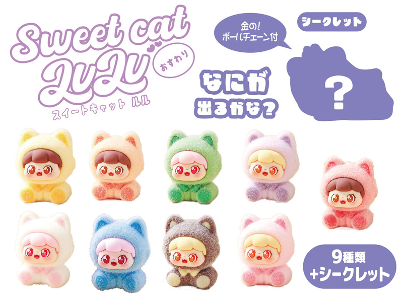 猫耳とくりっとした瞳が可愛い【スイートキャット・ルル】のラブリーなマスコットが新登場♪♪表面はフロッキー加工のフワフワ手触りが魅力。ブラインドパッケージ仕様のため、開封まで中身が分からずワクワク感満載。開ける瞬間のドキドキを楽しめます。デスクやリビングにそっと飾るだけで、ふんわり癒しの空間を演出。プレゼントにもめちゃくちゃ喜ばれるアイテムです。