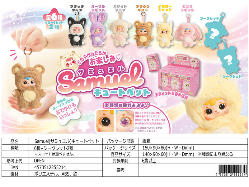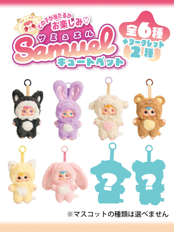 キーリング付きでおでかけもいっしょ♪♪Samuelシリーズから『キュートペット』が新登場~♪もこもこキュートな人形は全8種類!ブラインドパッケージ仕様のため、開封まで中身が分からずワクワク感満載。開ける瞬間のドキドキを楽しめます。デスクやリビングにそっと飾るだけで、ふんわり癒しの空間を演出。プレゼントにもめちゃくちゃ喜ばれるアイテムです。