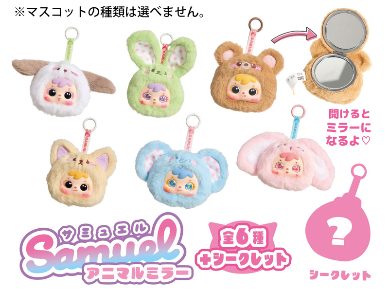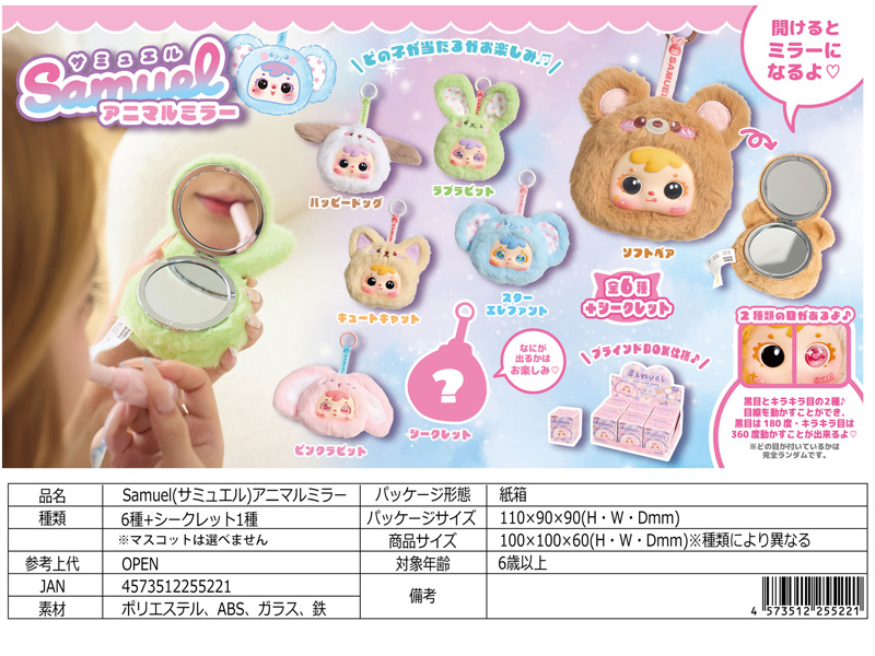 キーリング付きでおでかけもいっしょ♪♪Samuelシリーズから『アニマルミラー』が新登場~♪もこもこキュートなマスコットは開けるとコンパクトミラーに変身!ブラインドパッケージ仕様のため、開封まで中身が分からずワクワク感満載。開ける瞬間のドキドキを楽しめます。女の子向けのプレゼントにめちゃくちゃ喜ばれるアイテムです。