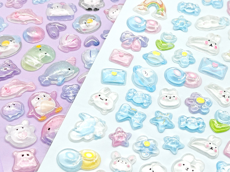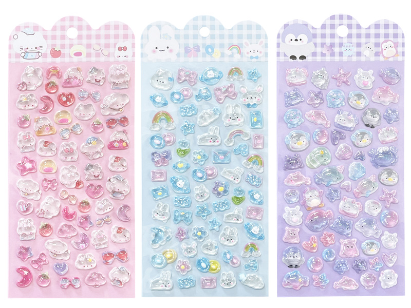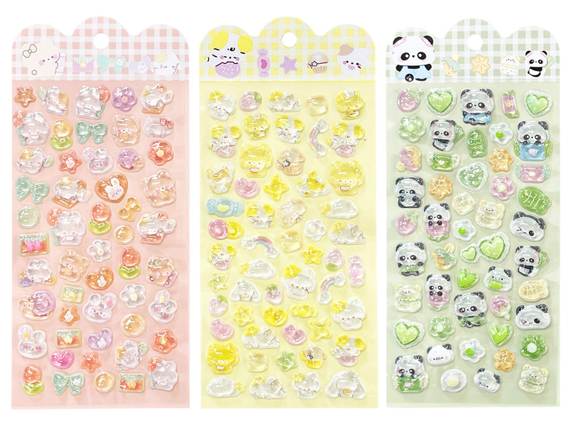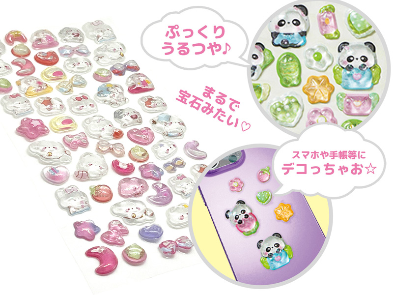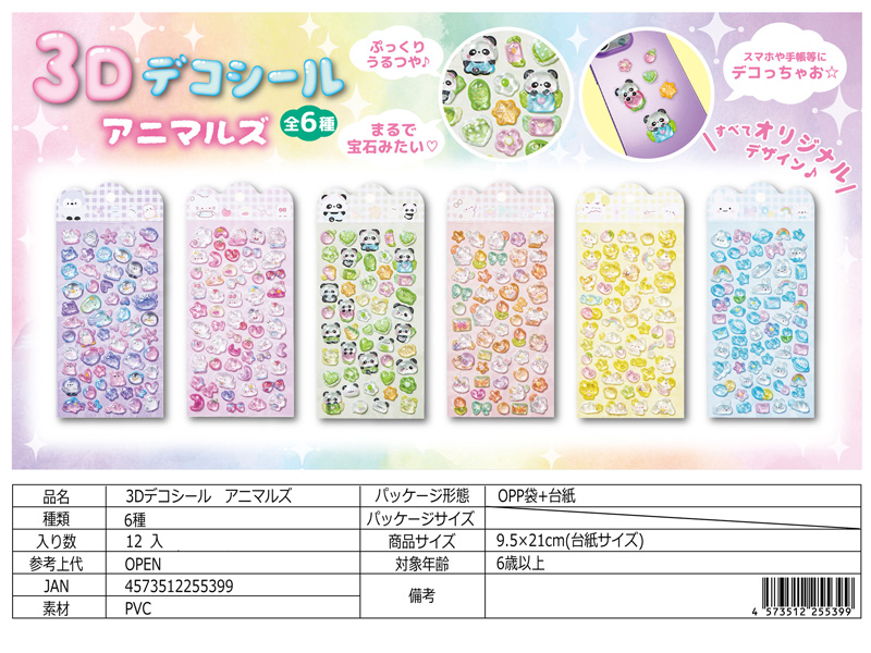 硬い材質のぷっくりと厚みのある立体シール「3Dデコシール アニマルズ」が登場です♪シール表面はぷっくりうるつや♪まるで宝石みた~い♪ノートや手帳の表紙、スマホケースのデコレーションにもぴったり。貼るだけでワンポイントのアクセントになり、かわいさがぐっとアップします。個別包装されておりますので、イベントやくじ引きの景品としてもおすすめです。