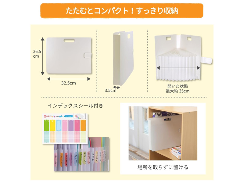 - A4サイズ/13ポケット/インデックスシールつき