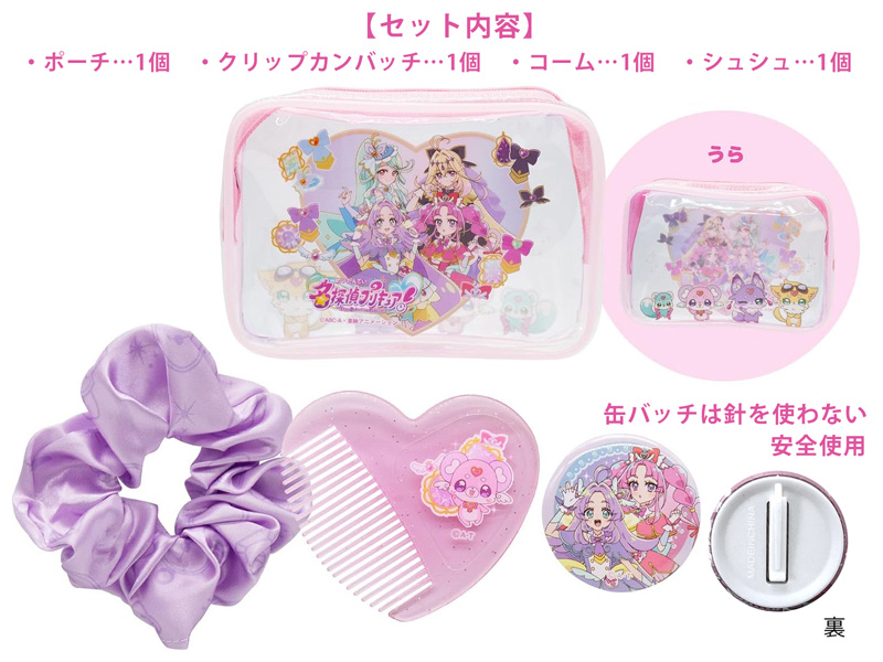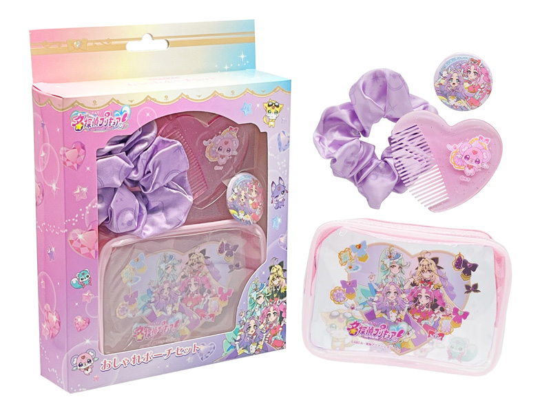 おしゃれなガールに変身しよう♪シリーズ第23作「名探偵プリキュア!」のおしゃれポーチセットが登場♪ポーチの他にハート型コーム・クリップカンバッチ・シュシュなどのおしゃれアイテムが入っています。女の子向けのお誕生日プレゼントなどにいかがでしょうか?