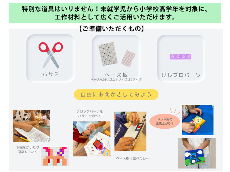 - ご用意いただくもの:はさみ、けしブロパーツ、パーツ容器、