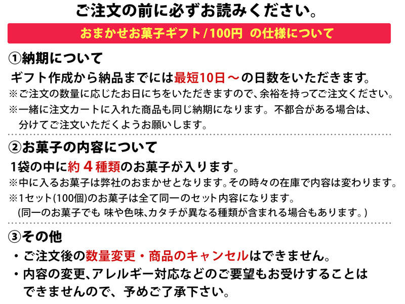 オリジナルギフト おまかせお菓子ギフト/100円【軽減税率対象商品】