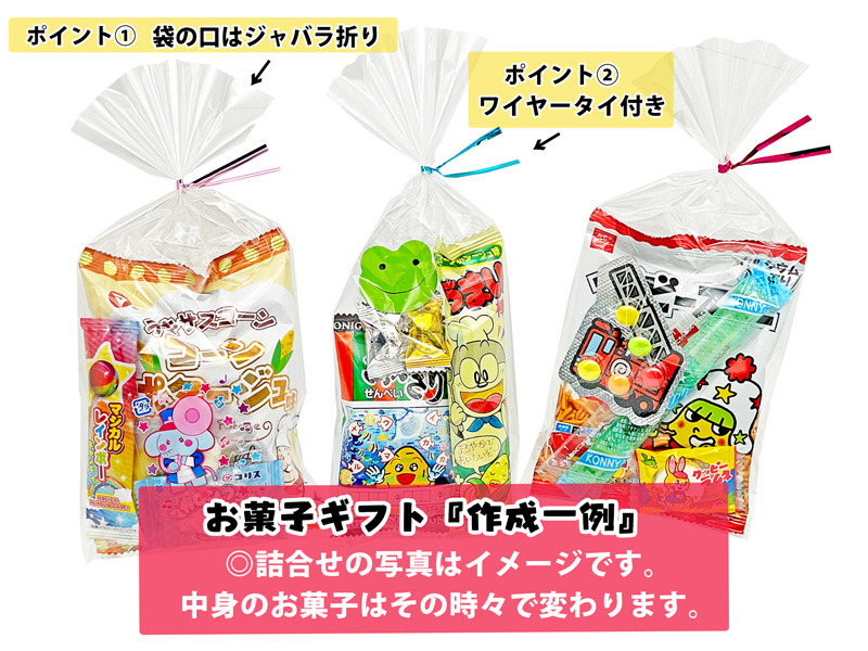 - セット内容…1袋の中に(約4種類)のお菓子が入ります。…(※その時々でお菓子の内容は変わります。)