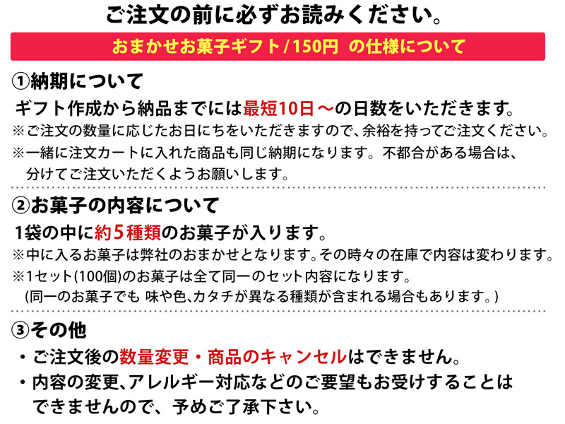 オリジナルギフト おまかせお菓子ギフト/150円【軽減税率対象商品】