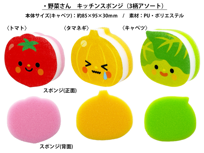 - キッチンスポンジ:3種(トマト・タマネギ・キャベツ)