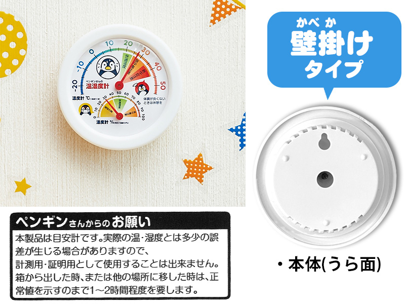 - ※本製品は目安計です。実際の温・湿度とは多少の誤差が生じる場合があります。/※計測用・証明用として使用すことはできません。