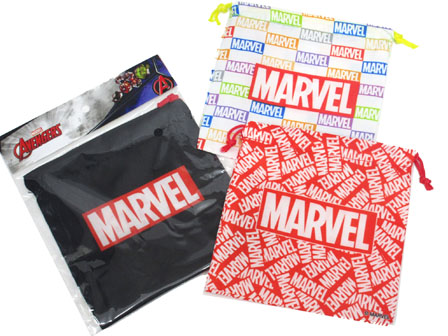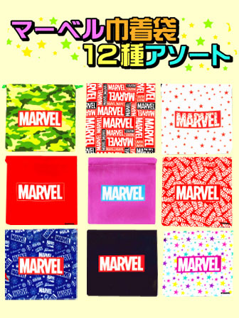ティーンの間で大人気の「MARVEL」グッズが続々新入荷!こちらはマーベルロゴがプリントされたシンプルで使いやすい巾着袋!バリエーションはドドンと全12柄!お祭り・イベント・子供会などの販促景品・キャラクター景品などにゼヒ!