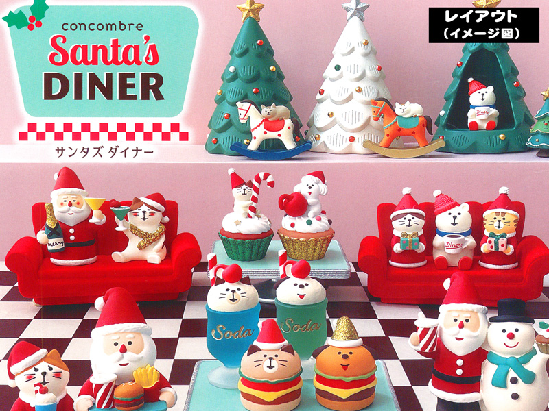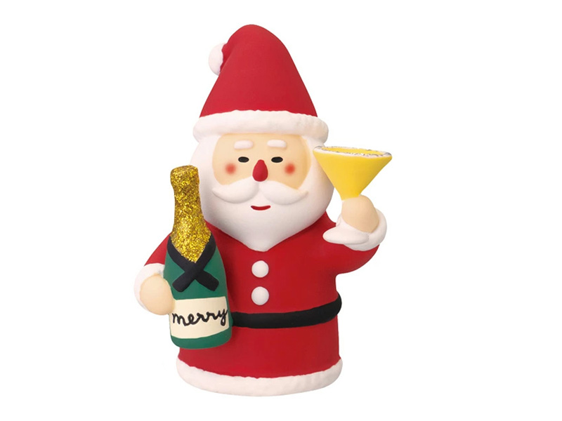 DECOLEさんのマスコットが続々登場♪今年のクリスマスのテーマは「サンタズダイナー」こちらは、シャンパン片手に乾杯してたらフラフラしてきた…「merryシャンパンサンタ」のマスコットです。concombreの仲間たちと一緒に飾ってストーリーを楽しんでみてはいかがでしょうか?