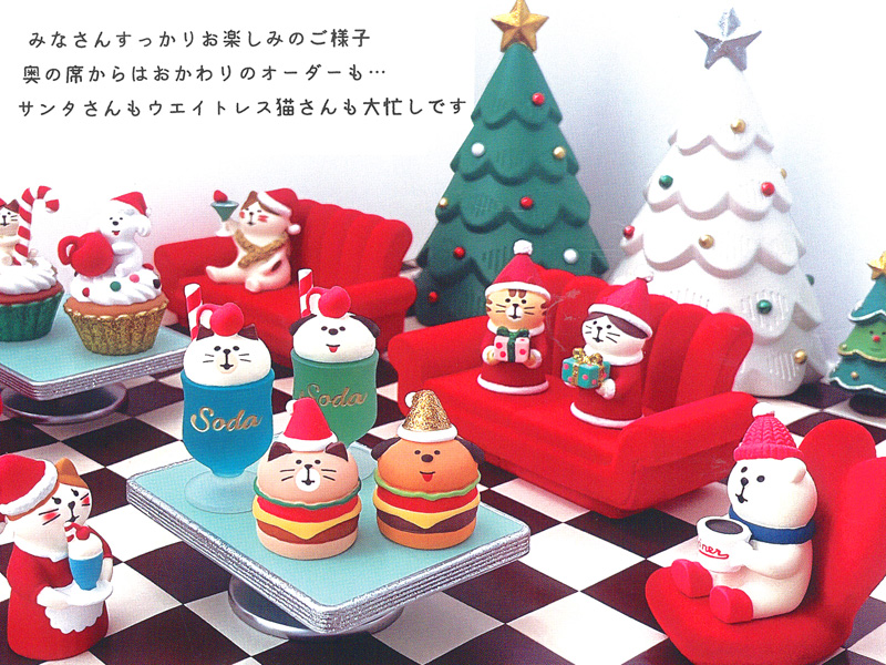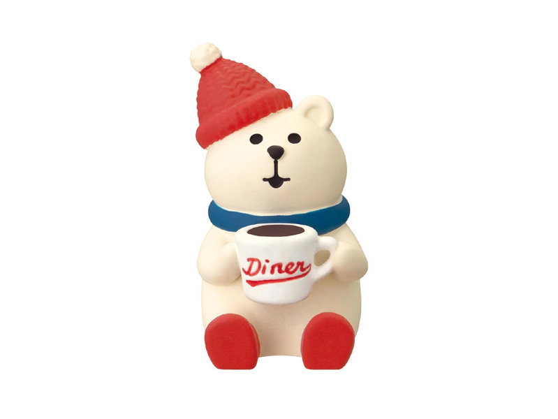 DECOLEさんのマスコットが続々登場♪今年のクリスマスのテーマは「サンタズダイナー」こちらは…コーヒーはたっぷりめブラック一年中ホット一択。「コーヒーしろくま」のマスコットです。concombreの仲間たちと一緒に飾ってストーリーを楽しんでみてはいかがでしょうか?