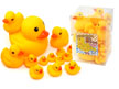 みんな仲良く、お水の上をプーカプカ♪いろんなサイズのアヒルさん浮かし人形セットです♪1箱の中にはたっぷり60個入っており、どれも笛付で体を押すとピーピーおとがなるんですよ。