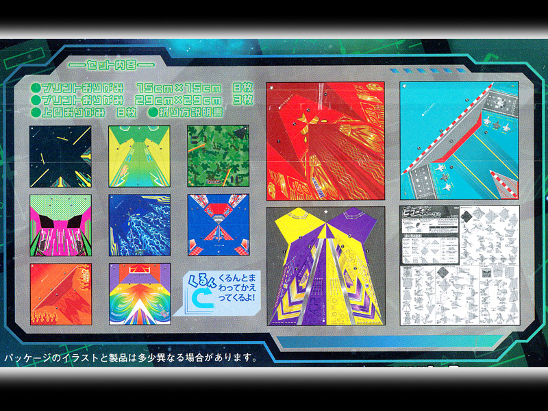 - (セット内容)…・プリントおりがみ(15×15㎝)×8枚、・プリントおりがみ(29×29㎝)×3枚、・上質おりがみ(15×15㎝)×8枚、・折り方説明書つき、