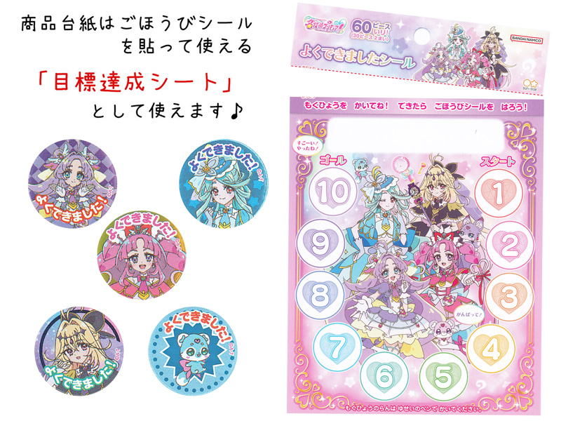 キャッチコピーは…そのナゾ!キュアット解決!シリーズ第23作【名探偵プリキュア!】のステップアップシールが登場!勉強・お手伝い・病気やケガの治療など、なにかに挑戦し頑張っている子ども達をこのご褒美シールで応援してあげましょう。ちなみにシール台紙は、目標を書いて貼れる「ステップアップシート」として使うことができますよ。
