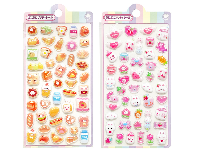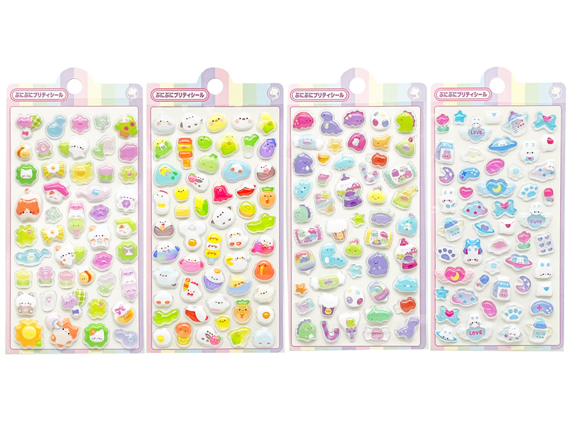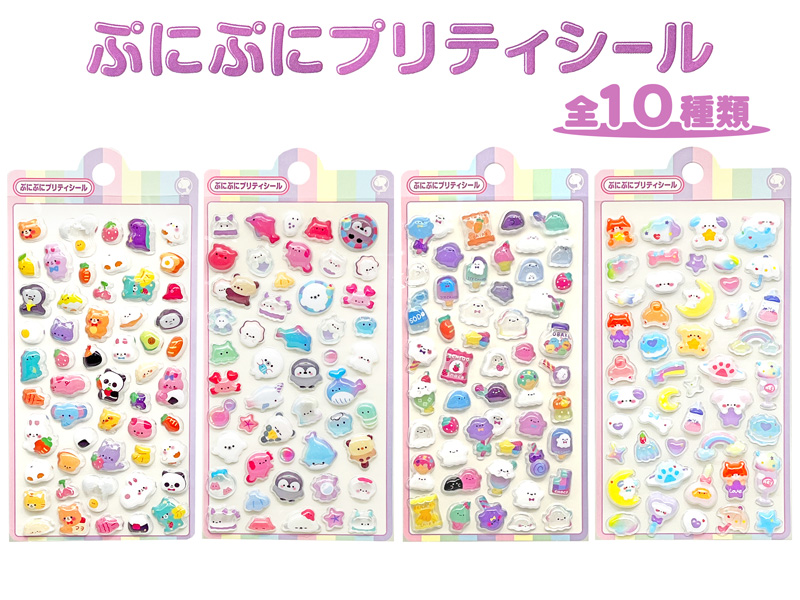 ぷっくりとしたエアー感のある半立体シール『ぷにぷにプリティシール』が登場です♪立体的で存在感があり、貼るだけでデコレーションがぐっと華やかに!スマホや手帳、ノートなど、身の回りのアイテムを手軽にかわいくアレンジできます。シールのバリエーションはドドーンと全10種類!おでかけ気分を盛り上げてくれる、かわいいキャラクターがいっぱい。集めて楽しい、使ってうれしいシールです。