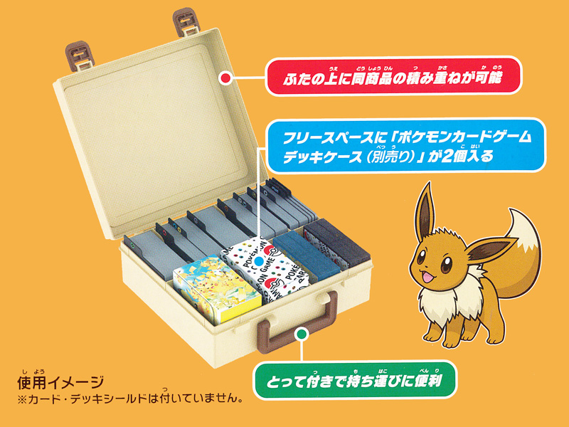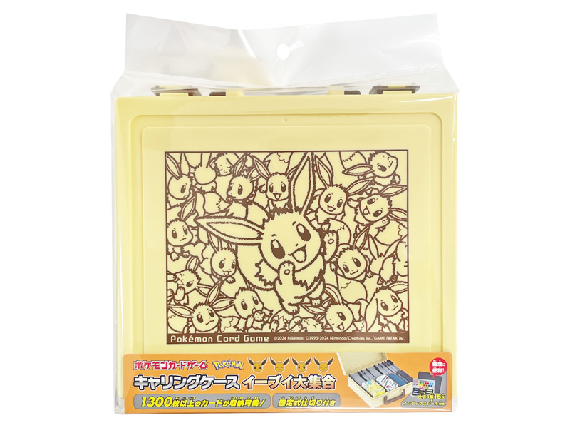 ポケモンカードゲームキャリングケースに「イーブイ大集合」が登場!カードを大容量持ち運びのできる収納ケース。固定式仕切り式になっていて、カードが1300枚以上収納可能です。