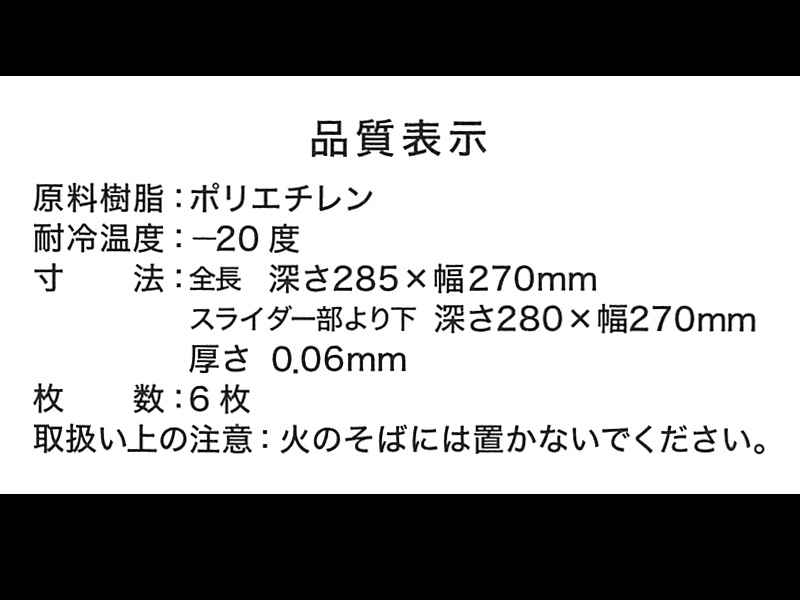 ジップバッグ(全長):約H285×W270/(スライダー部より下):約H280×W270×D0.06mm