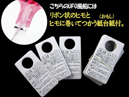 - 風船の他にリボン状の糸+糸の先につける紙台紙がついています。