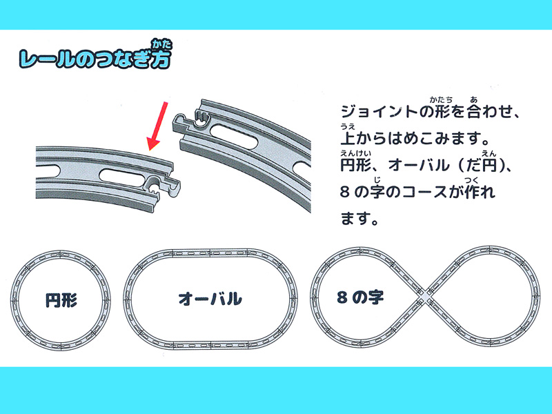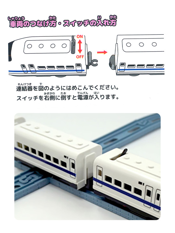 - セット内容:車両×3(先頭動力・客車・後続車両)・線路パーツ×17本