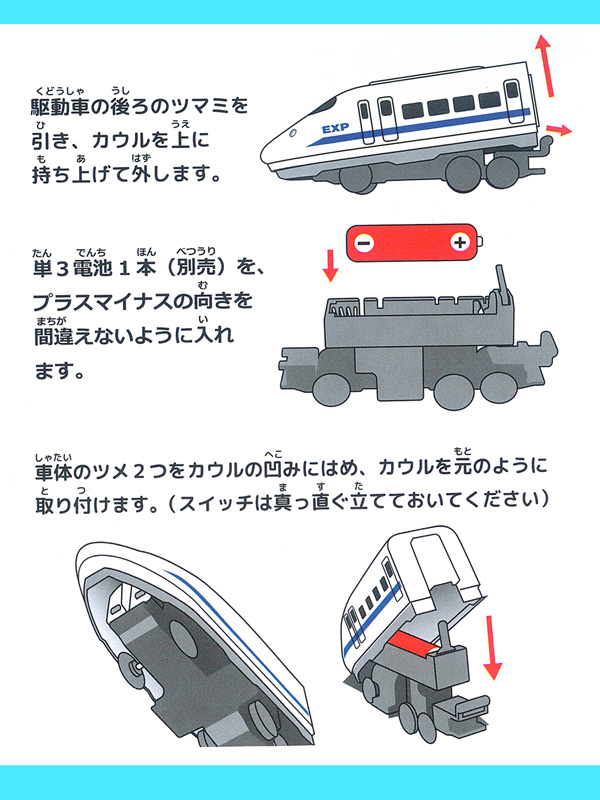 - 素材…(本体):ABS、/(駆動タイヤ):TPR、/(レール):PP、