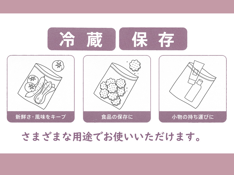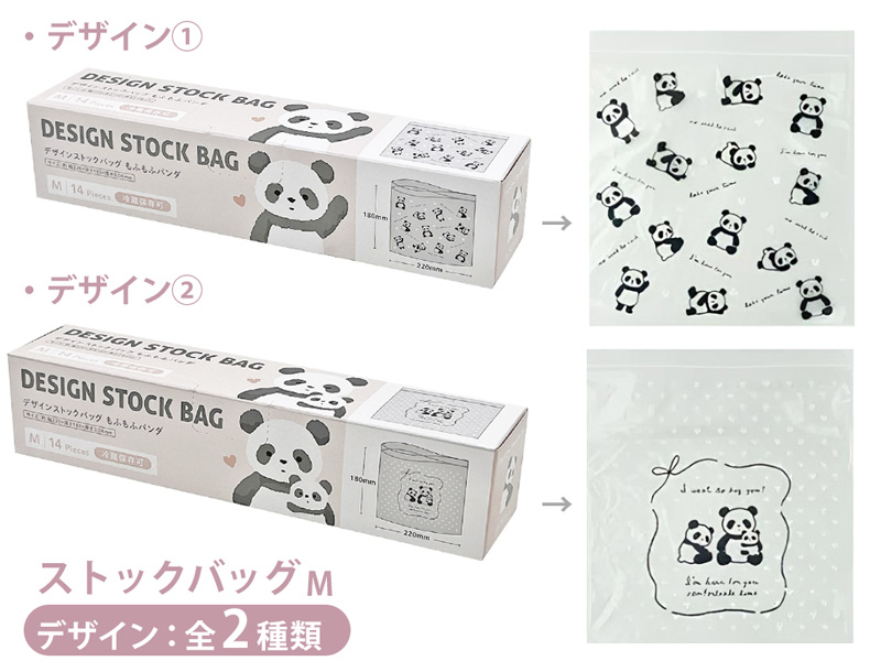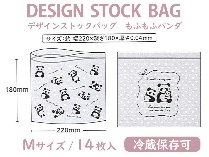食品を入れて冷蔵保存ができるジッパー式のバッグです。ジップバッグにプリントされたイラストは、かわいいパンダさん柄♪食品の保存用の他にも化粧品やアクセサリーの持ち運びにもちょうどいいMサイズ14枚入りです。
