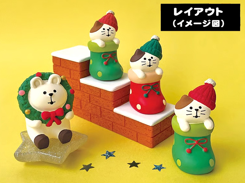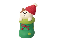 DECOLEさんのマスコットが続々登場♪今年のクリスマスのテーマは「サンタズダイナー」こちらは、すっぽり靴下におさまりあったかそう…「靴下にゃんこ・赤」のマスコットです。concombreの仲間たちと一緒に飾ってストーリーを楽しんでみてはいかがでしょうか?