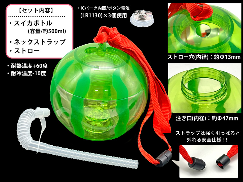 - セット内容:スイカボトル(約500ml)×1・ストロー×1・ネックストラップ×1