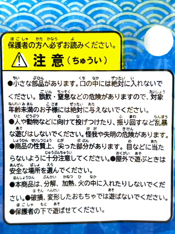 - ※人や動物に向けて投げつけたり、振り回すなど乱暴な遊び方をしないでください。