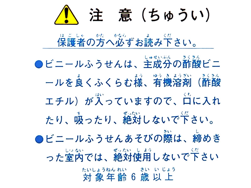 - ※当製品は有機容媒を使用した。ビニール風船です。口に入れたり、吸ったりは絶対にしないでください。