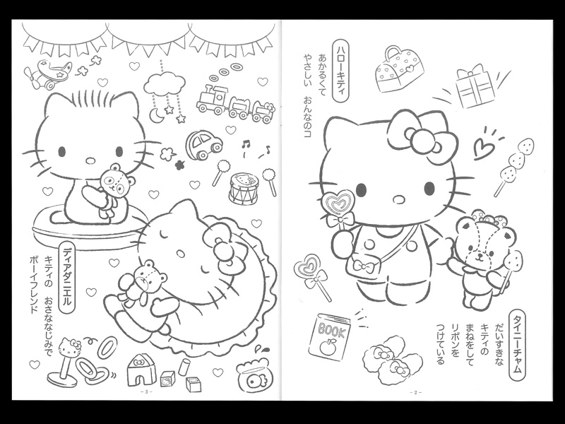 サンリオの大人気キャラクター!【ハローキティ】のぬりえ帳が登場!!32ページすべて違う内容なので、思う十分ぬりえが楽しめます。
