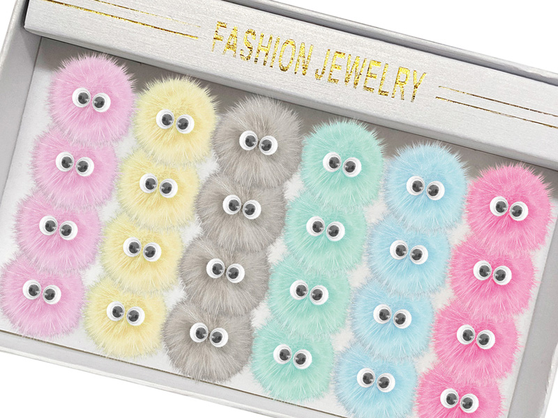 カラフルなファーにかわいいキョロキョロ目玉が付いたキュートなファッションリングです。指輪は全6色をミックスした、計24個入り!お祭りや各種イベントの景品玩具やガチャガチャのカプセルトーイにもオススメです。