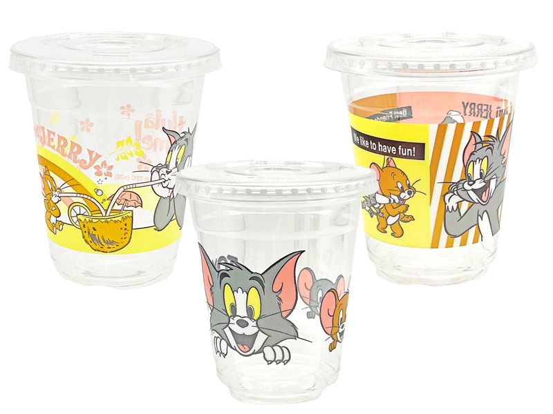 「トムとジェリー」のフタ付きPETカップが登場!ジュースやかき氷、タピオカドリンクを入れて販売したり、ポップコーンの容器にしてもOKです!!他にも、パーティーやBBQの時に重宝しますし、フタにはストローを刺す穴が付いていてとっても便利ですよ!