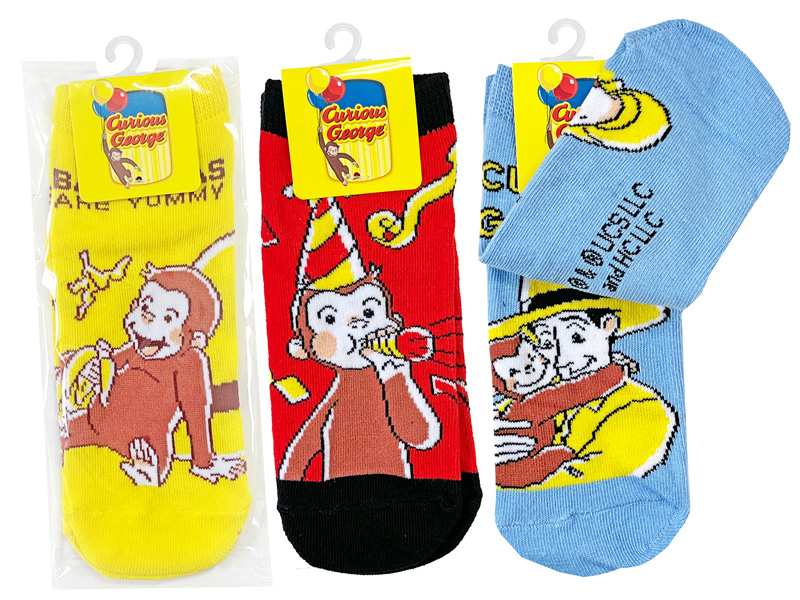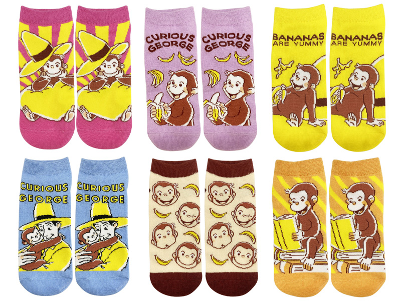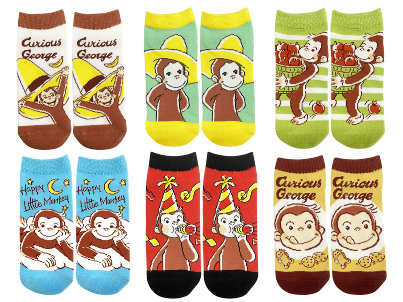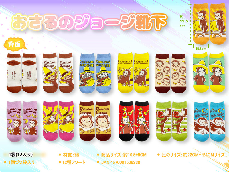 世界中で愛されている絵本「おさるのジョージ」の景品雑貨がぞくぞく登場~♪♪こちらはかわいいイラストがプリントされたキャラクターソックス♪かわいらしい靴下の柄は全部で6種。キッズ向けの靴下ですが、サイズ合えば、女性の方でもご使用可能です。