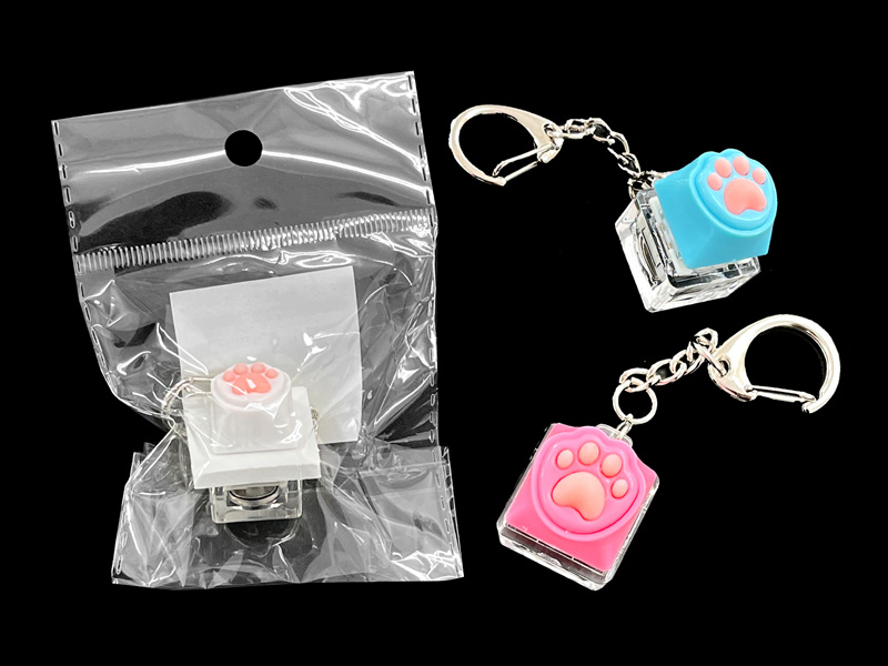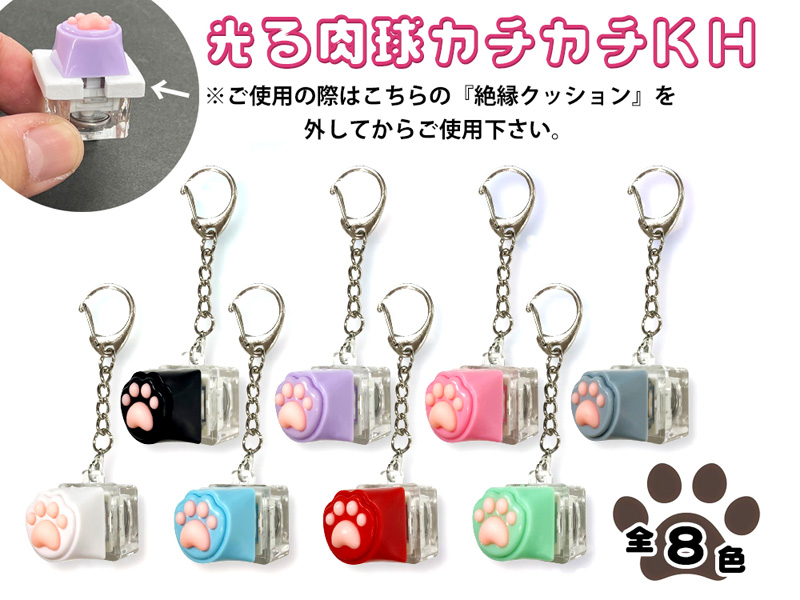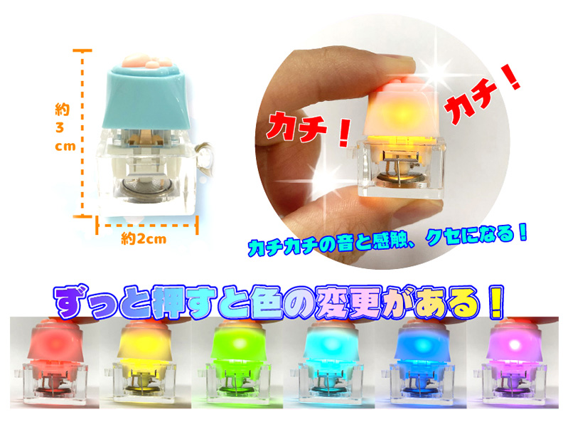 カチカチ音が気持ちイィ~!「パソコンのキーボード」みたいなカタチのフィジェットトーイ「光る肉球カチカチキーホルダー」が登場です!!ボタンを指で押すとカチカチ音が鳴りピカピカと光ります…※長押しするとカラフルに光ります。本体カラーは色とりどりに変化します!本体にはキーホルダーも付いておりますので、リュックやかばん、ポーチ等に下げてお使いいただけます。